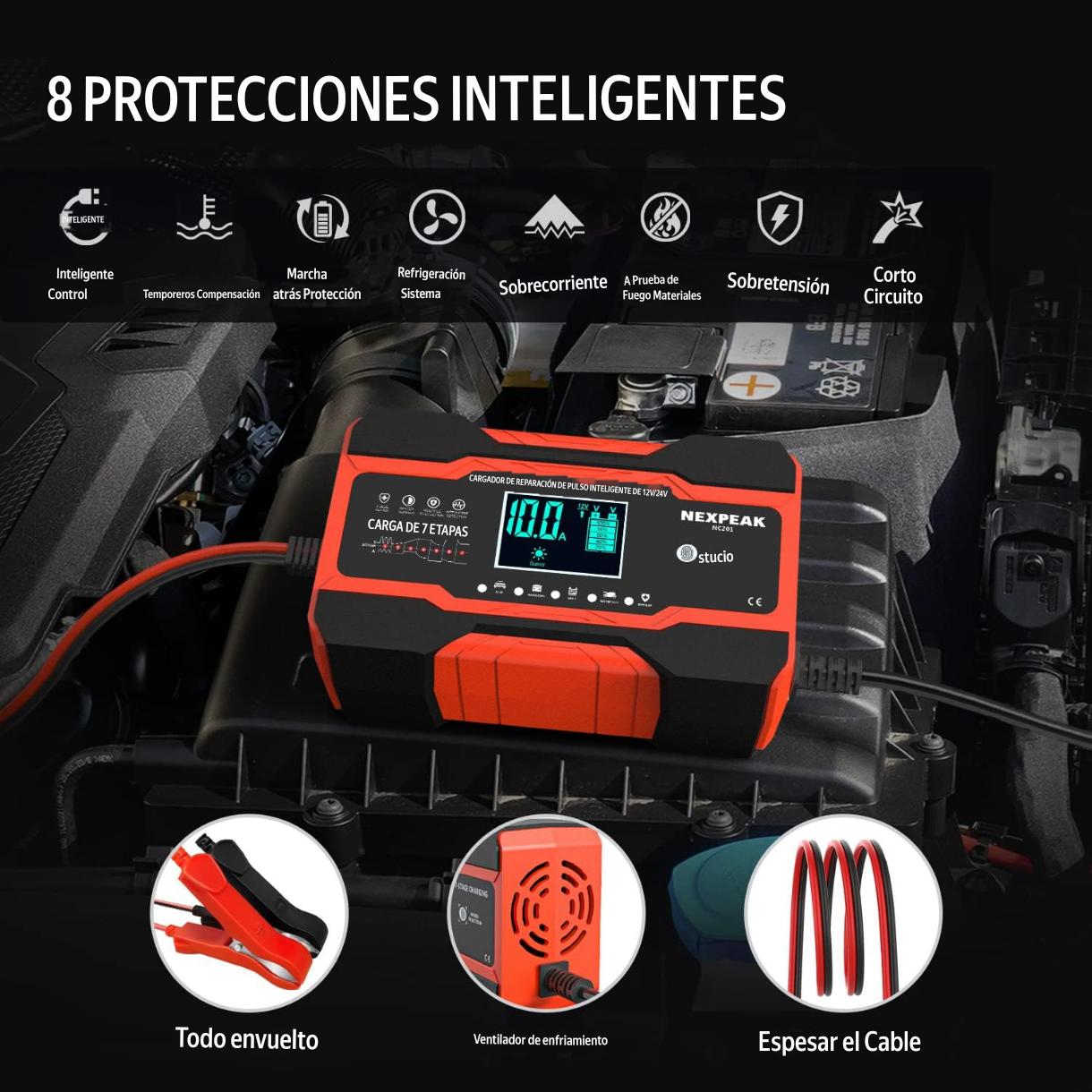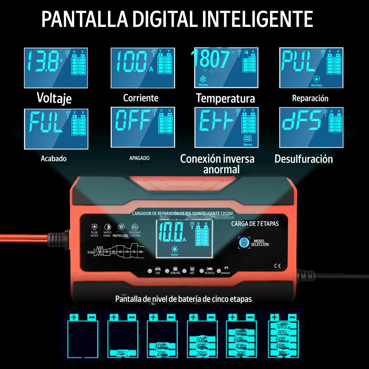 - *Inteligente*: 7 etapas de carga, detección de pulso y reparación 🔧