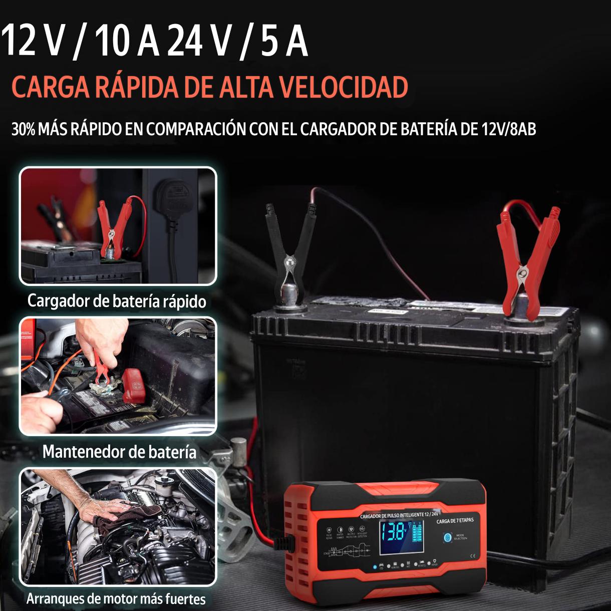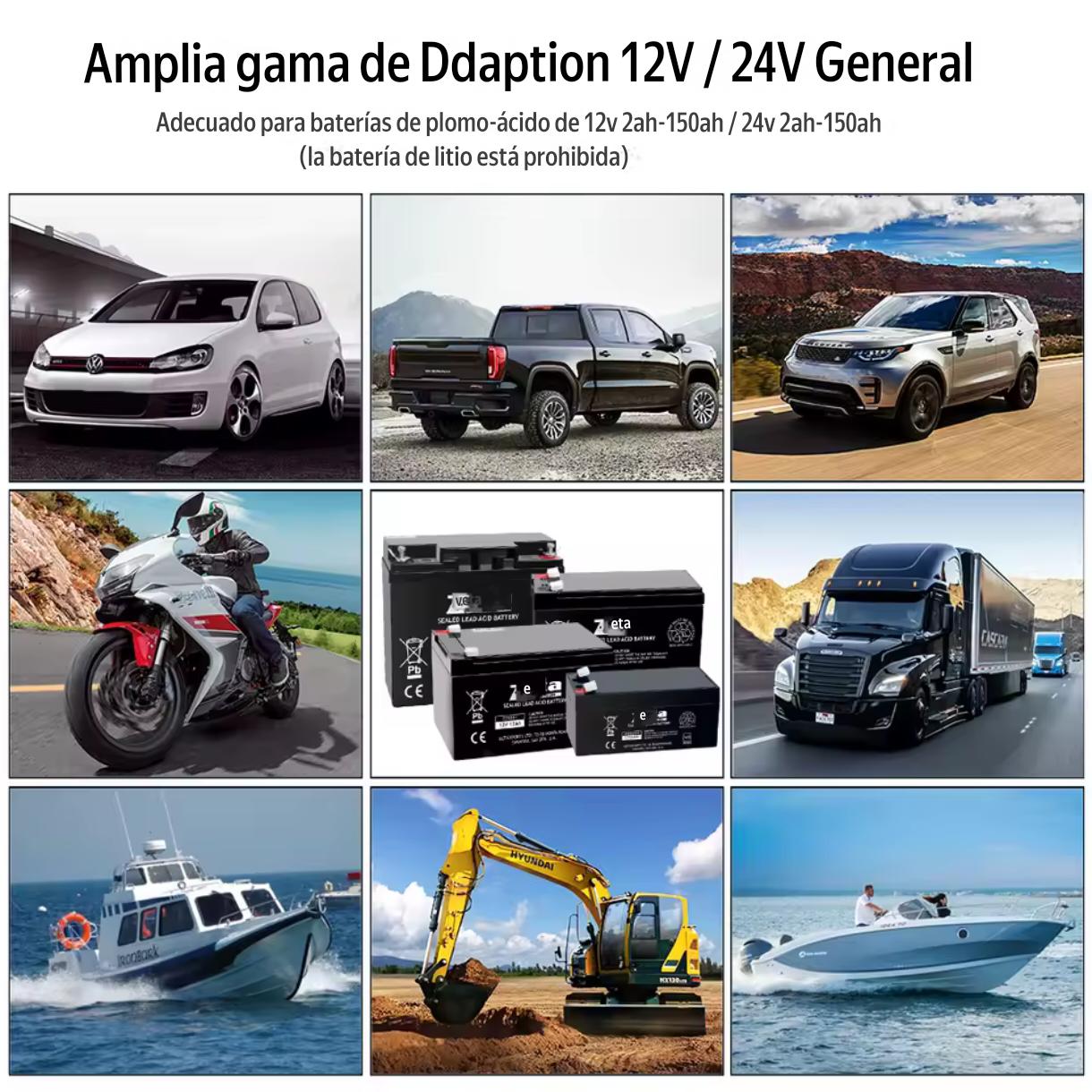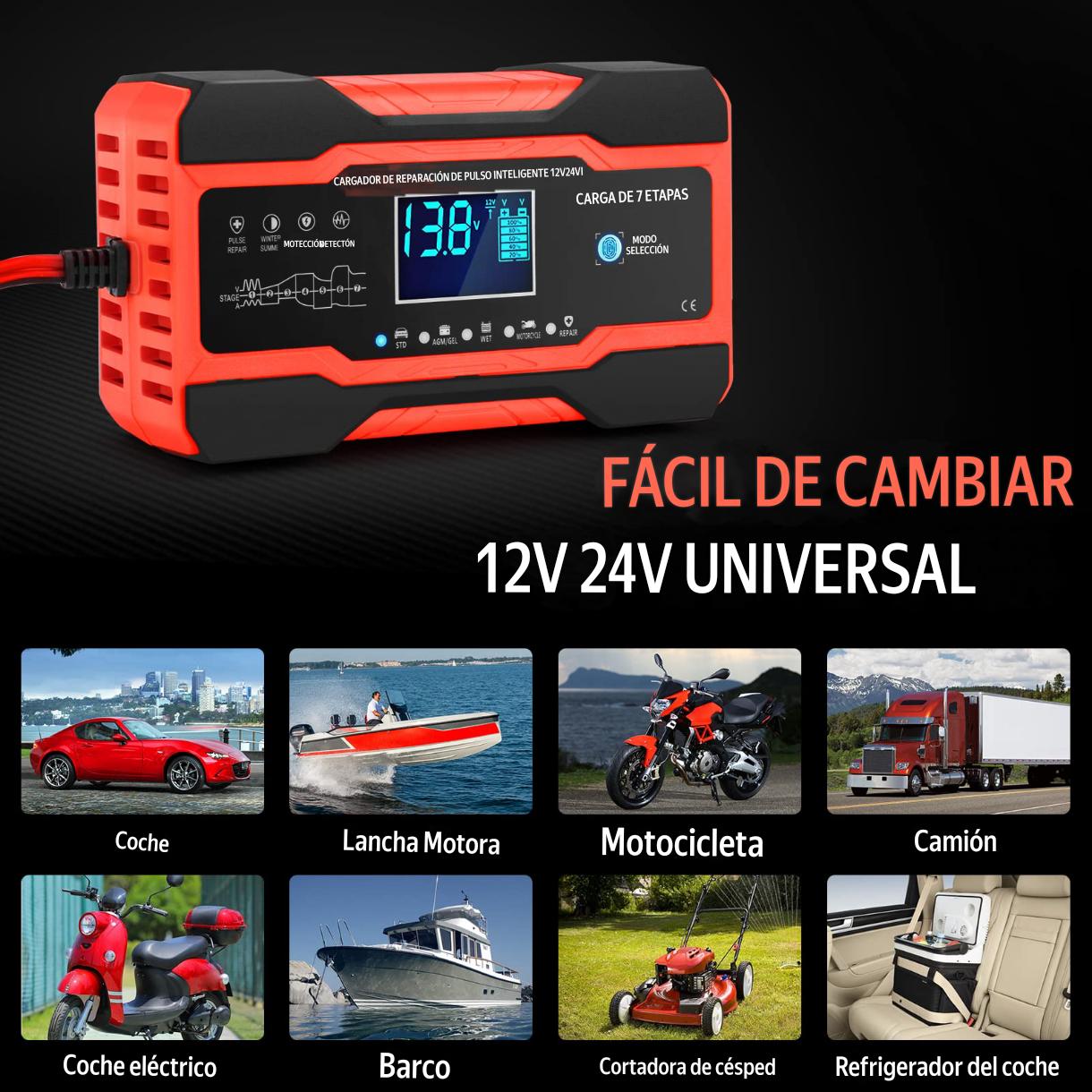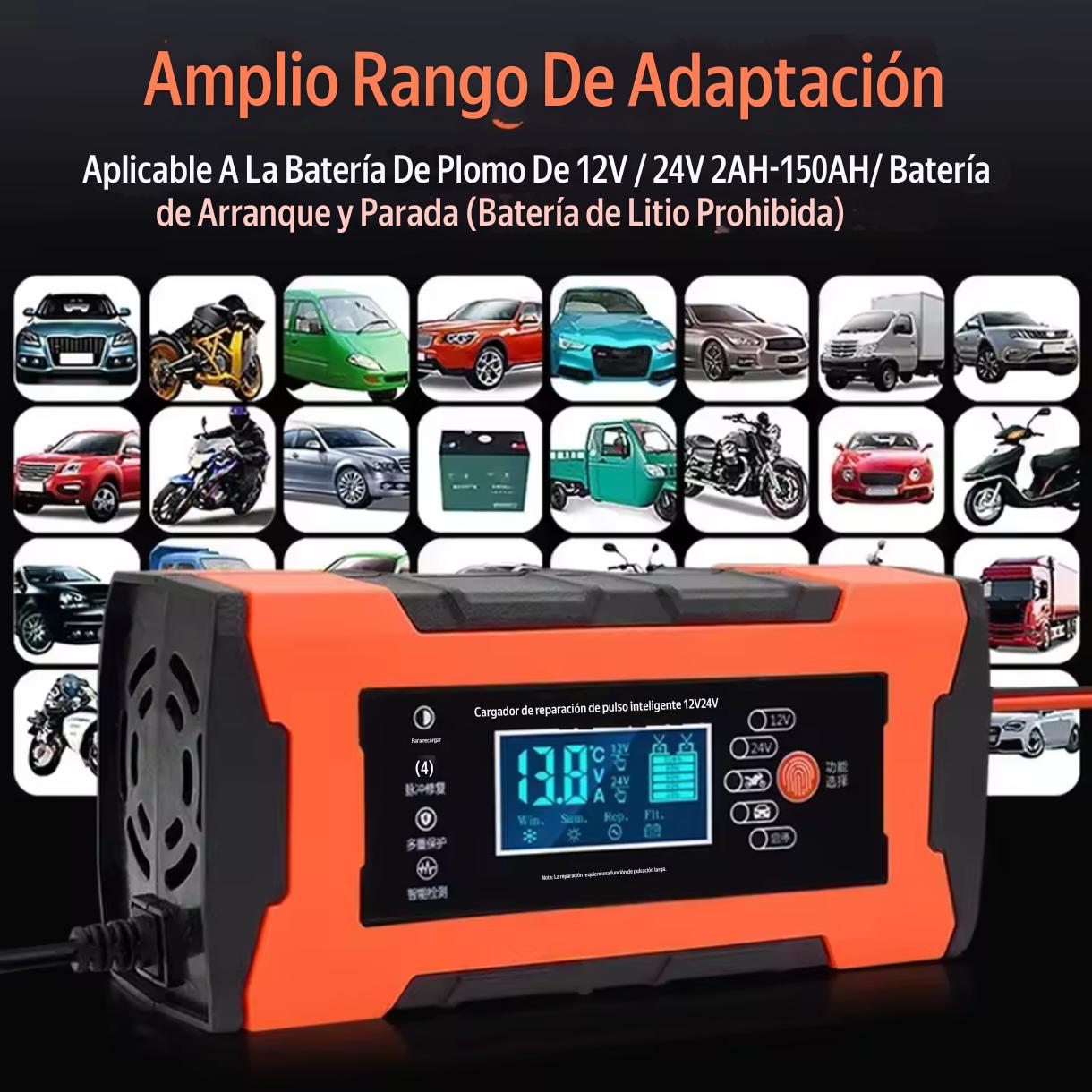 - *Universal*: compatible con baterías de plomo-ácido de 12V y 24V, para coches, motocicletas y más 🚗🏍️