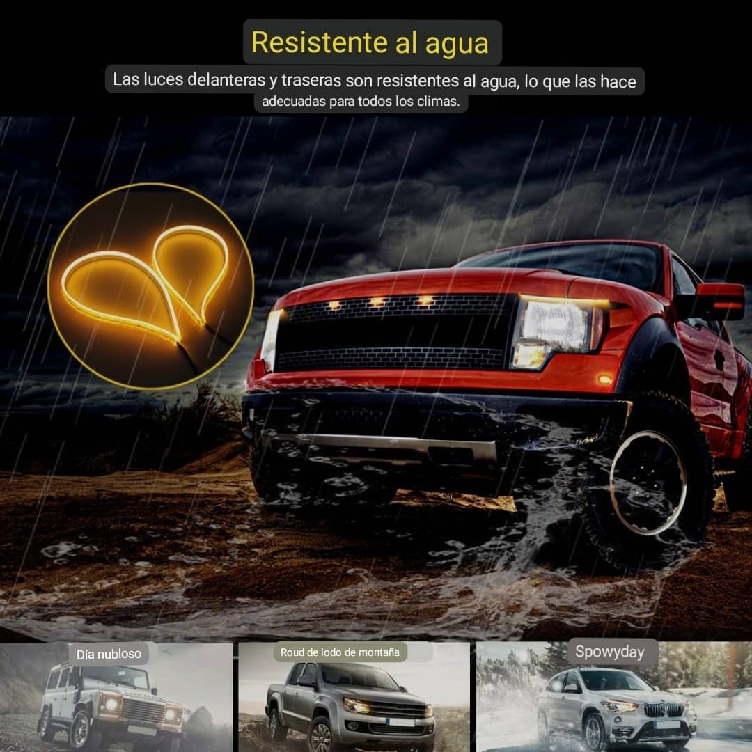 - Luz de conducción DRL y luz de señal de giro funcionan como luz de circulación diurna con luz blanca y funcionan como luz de señal de giro con siguiente luz amarilla.
